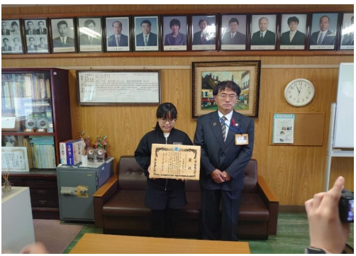 本年度はコロナウイルスの影響で、ウッドフェスタ事業や、木工工作コンクール表彰式が中止・延期となりました。県知事賞を受賞した生徒だけでも、何とか表彰式ができないか、県庁林業振興課と打合せを重ねて、受賞した生徒の学校に農林事務所所長・林業振興課職員の方と一緒に訪問して交付式を行うことができました。