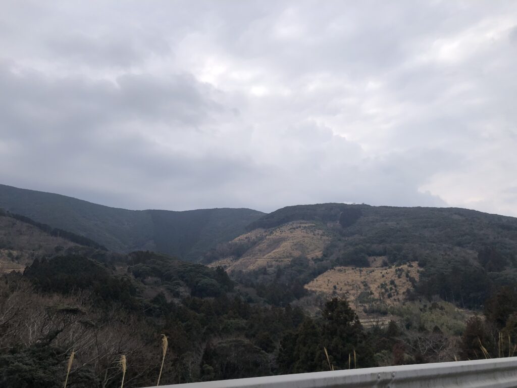 翌日の大会に備えて、会場の山を最終チェック。しました。山の中を歩き回って、会長も委員長もへとへとです。