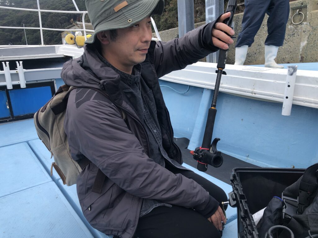 専務と会長代行は夕食を確保するために、荒波を超えて漁業にいそしみました。島での大会だからこそできる、食料調達方法です。