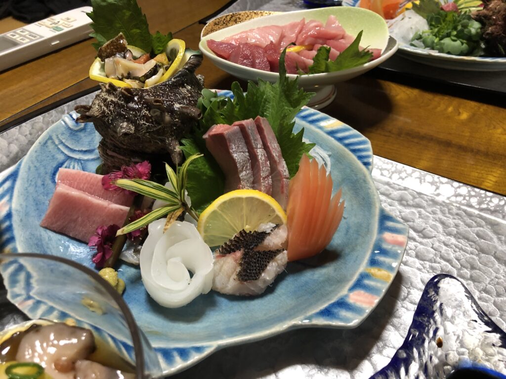 まずは対馬名物の様々な料理でおなかを満たします。そして、会長、委員長チームは会場の下見へ、専務と会長代行チームは夕食の調達に向かいました。