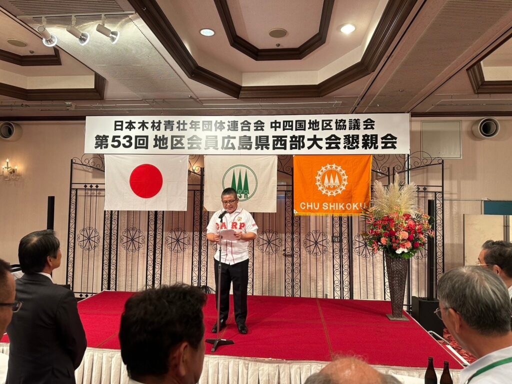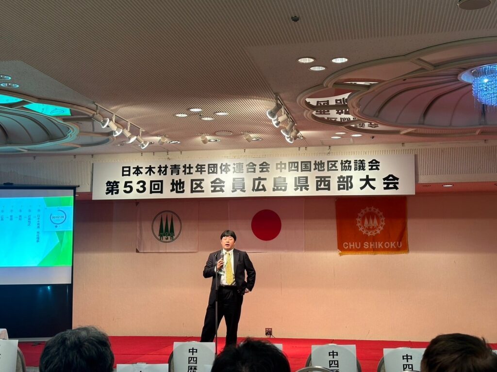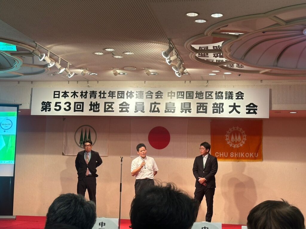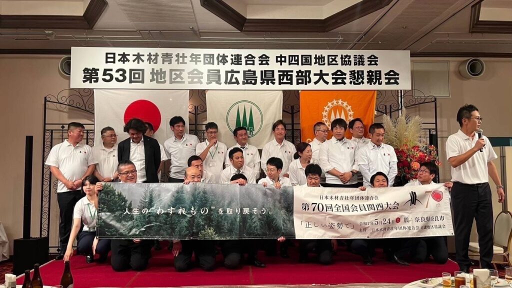 令和6年度 吉田会長のスローガンである『やってみよう』のもとで「中四国地区協議会 第53回 地区会員広島西部大会」を開催する。会員の交流を深め、木材業界の発展や、新たな挑戦、可能性の感じられるような大会を目指す。