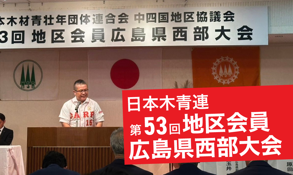 令和6年度 吉田会長のスローガンである『やってみよう』のもとで「中四国地区協議会 第53回 地区会員広島西部大会」を開催する。会員の交流を深め、木材業界の発展や、新たな挑戦、可能性の感じられるような大会を目指す。