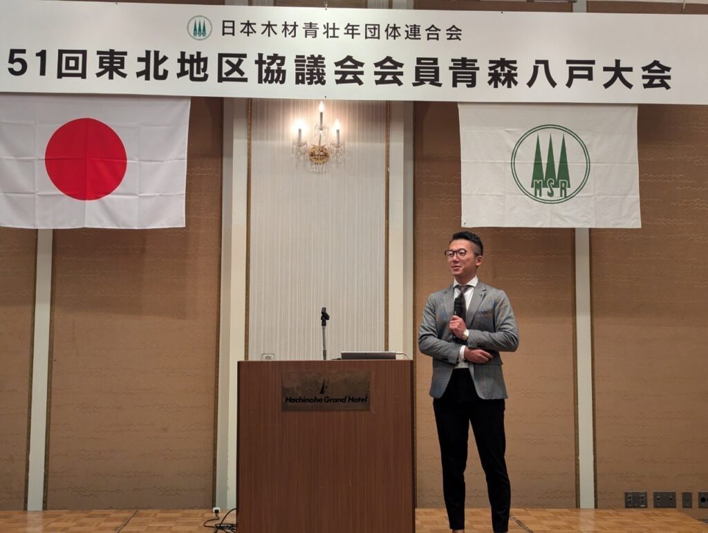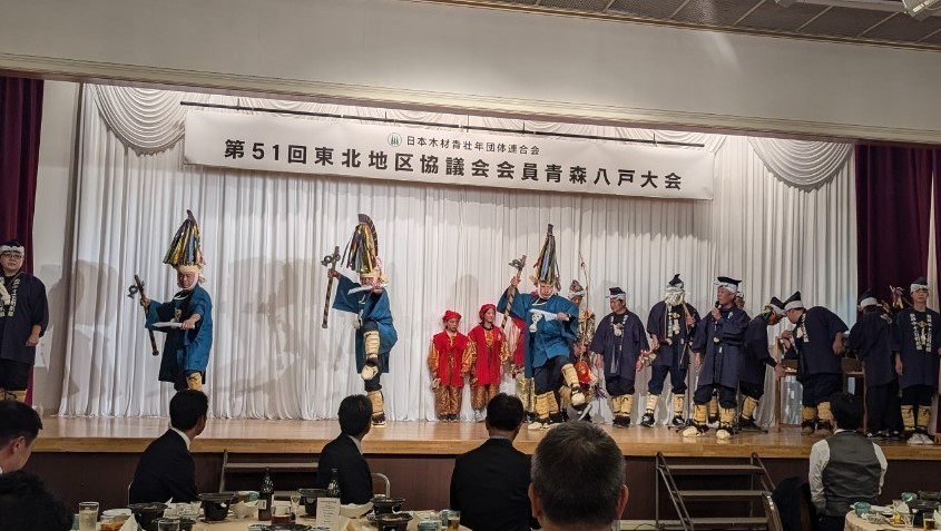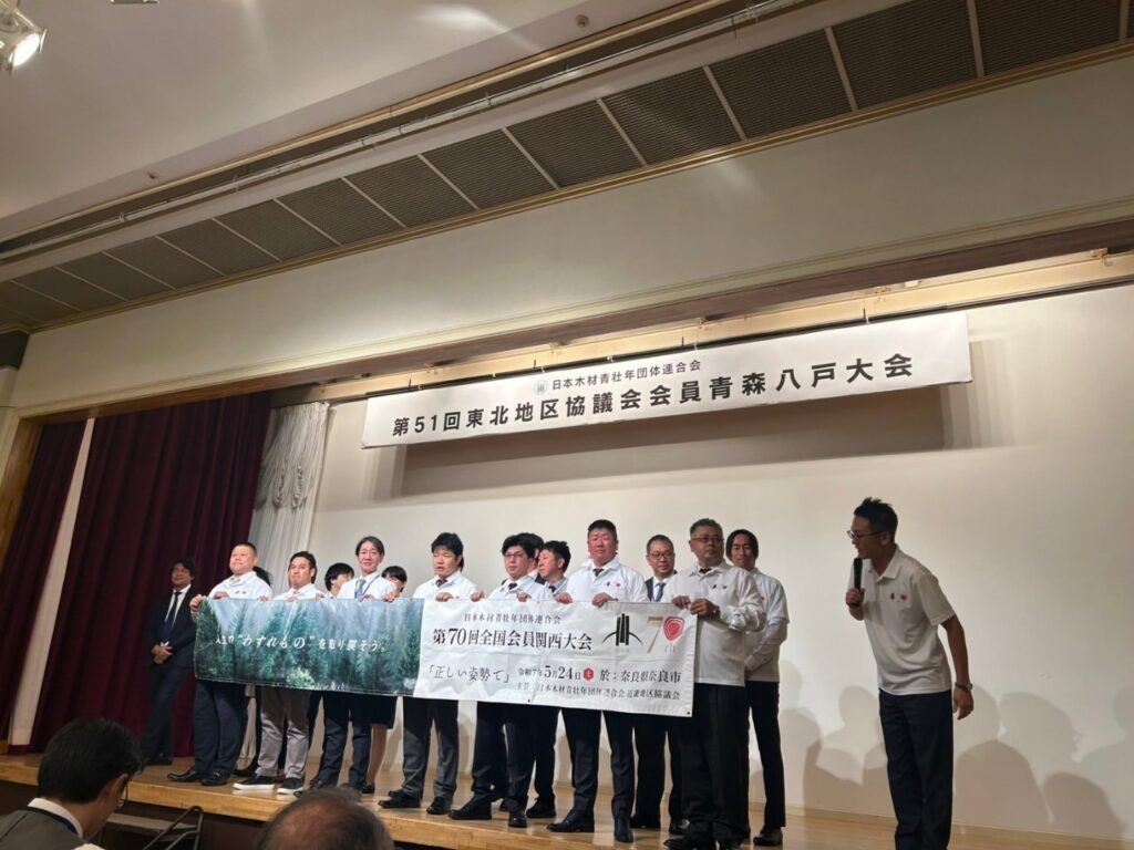 令和6年度10月26日青森県八戸市、八戸グランドホテルにて第51回東北地区協議会会員青森八戸大会式典、講演会、その後は懇親会を開催致しました。来賓、歴代全国会長、歴代地区長、日本木青連常任理事、東北会員、OB他77名の参加となりました。