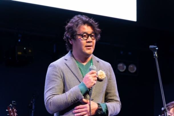式典は北信越地区協議会 古谷会長の挨拶から始まりました。古谷会長は何と眼鏡姿でギターを片手に登場、いきなり歌を熱唱、会場の参加者は皆度肝を抜かれました。大会スローガンである「リバイバル」には震災、豪雨災害に遭われた能登の復活、日本木青の若い力を集結させ能登半島復興に向けての足掛かりになる、前例のないエネルギッシュな協議会にしたいという思いが込められていました。能登半島地震、豪雨災害を振り返り能登の現状、活動報告、全国の会員からの支援のお礼を述べられました。