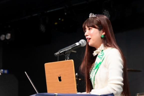 記念講演では2023年みどりの大使、能登ヒバアンバサダーとして活躍されている、上村さや香様を講師としてお招きし、「森で愛ましょう」~みどりの大使を経て、これからの人生と緑のつながり~というテーマでお話いただきました。講演の最後には石川県の県木能登ヒバで製作されたギターを使い代表曲「森で愛ましょう」を歌っていただき、会場は大いに盛り上がりました。