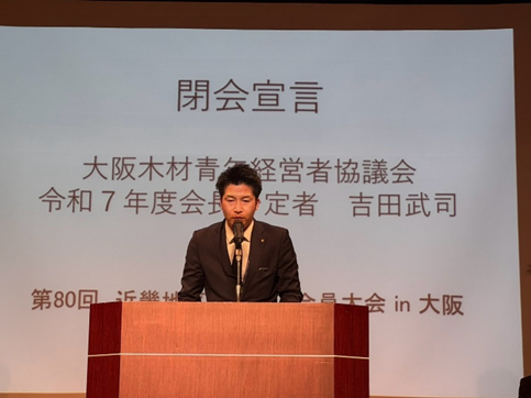 そして、大阪木材青年経営者協議会令和7年度会長予定者の吉田君の閉会宣言をもって、式典が終了しました。