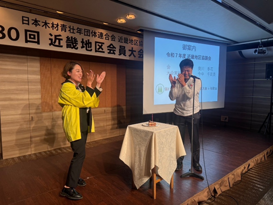 近畿地区大会の伊藤会長あいさつでは、スローガン「WELCOME TO NEW ERA~新時代を捕まえろ~」を掲げ、この一年間を通じて会員同士の活発な交流と結束強化を図り、新時代の変化に即応できる組織づくりを進めてきた点が詳細に報告されました。さらに、今後は地域や業種を越えた連携を深め、一丸となってより大きな成長と発展に挑戦していく姿勢や、新たな価値創造を目指す取り組みを継続していく意義についても触れられました。
