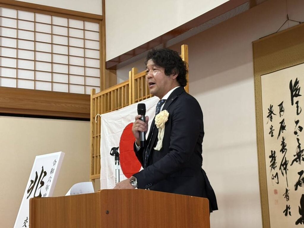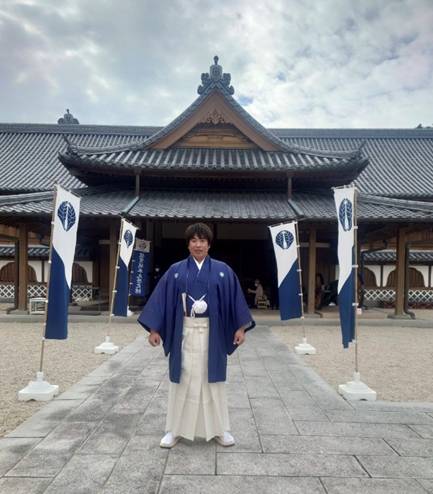 国の重要文化財に指定されている鯱の門をくぐると平城「佐賀城」でお出迎えをされていたのは、紋付袴に身を包んだ凛々しい福田マイケル会長(九州地区長)でした。
